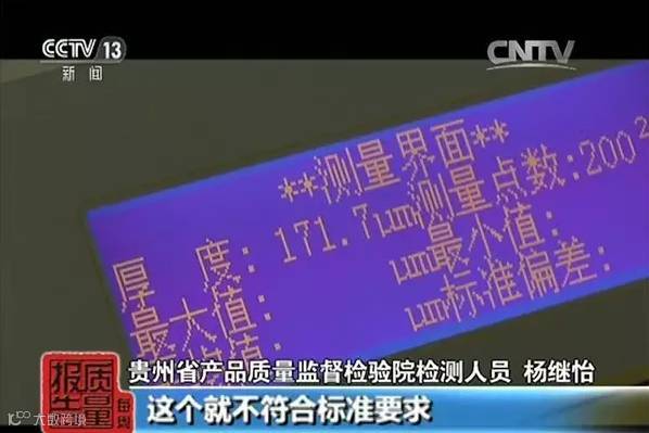 检测人员介绍,在20个批次的游泳圈中,最薄的只有0.17毫米,与标准要求的0.25毫米差了30%,游泳圈厚度不符合的有13个批次,不合格率达到了65%。