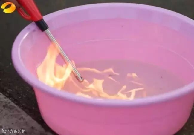 (图为油污衣物脱水后得到的“水”被点燃)