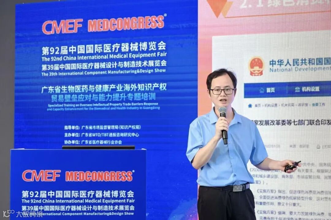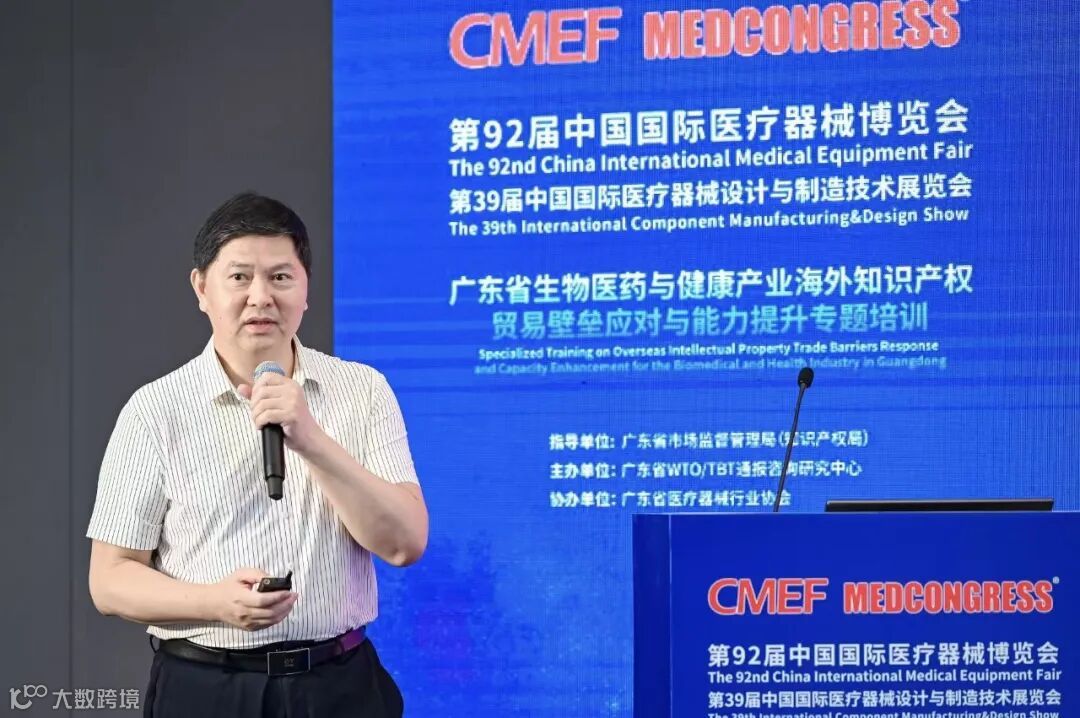 值此第92届中国国际医疗器械博览会(CMEF)在广州举办之际,为借助展会平台优势精准服务广东省生物医药与健康产业发展需求,系统提升企业应对海外知识产权壁垒的能力,2025年9月26日,由广东省市场监督管理局(知识产权局)指导、广东省WTO/TBT通报咨询研究中心主办、广东省医疗器械行业协会协办的“广东省生物医药与健康产业海外知识产权贸易壁垒应对与能力提升专题培训”在中国进出口商品交易会展馆(广州)顺利举办。