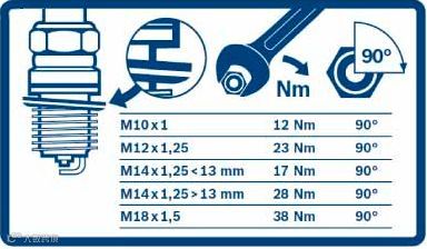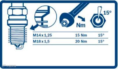 需要注意的是,火花塞根据螺纹尺寸、螺纹底座形式以及密封垫圈类型等不同,其安装力矩也是有所不同的,下面以博世火花塞为例进行详解。