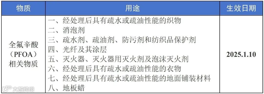 2025年1月1日起,如用于严重潮湿条件下的户外服装附有PFAS的信息披露和“使用了PFAS制造”(Made with PFAS chemicals)的声明,则可以销售至2028年1月1日。