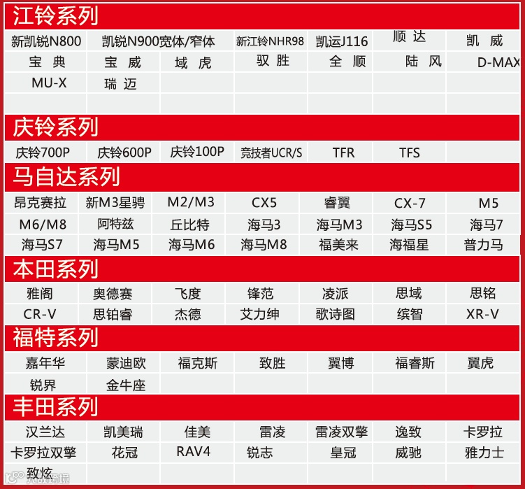 CHM系列刹车片囊括丰田.本田.马自达.福特.五十铃(江铃庆铃)等系列车系