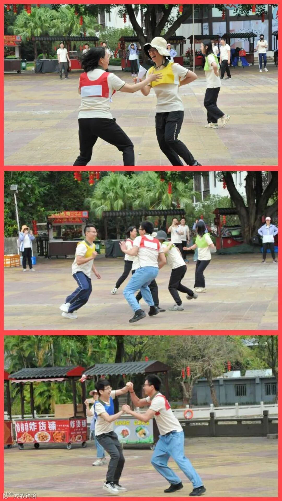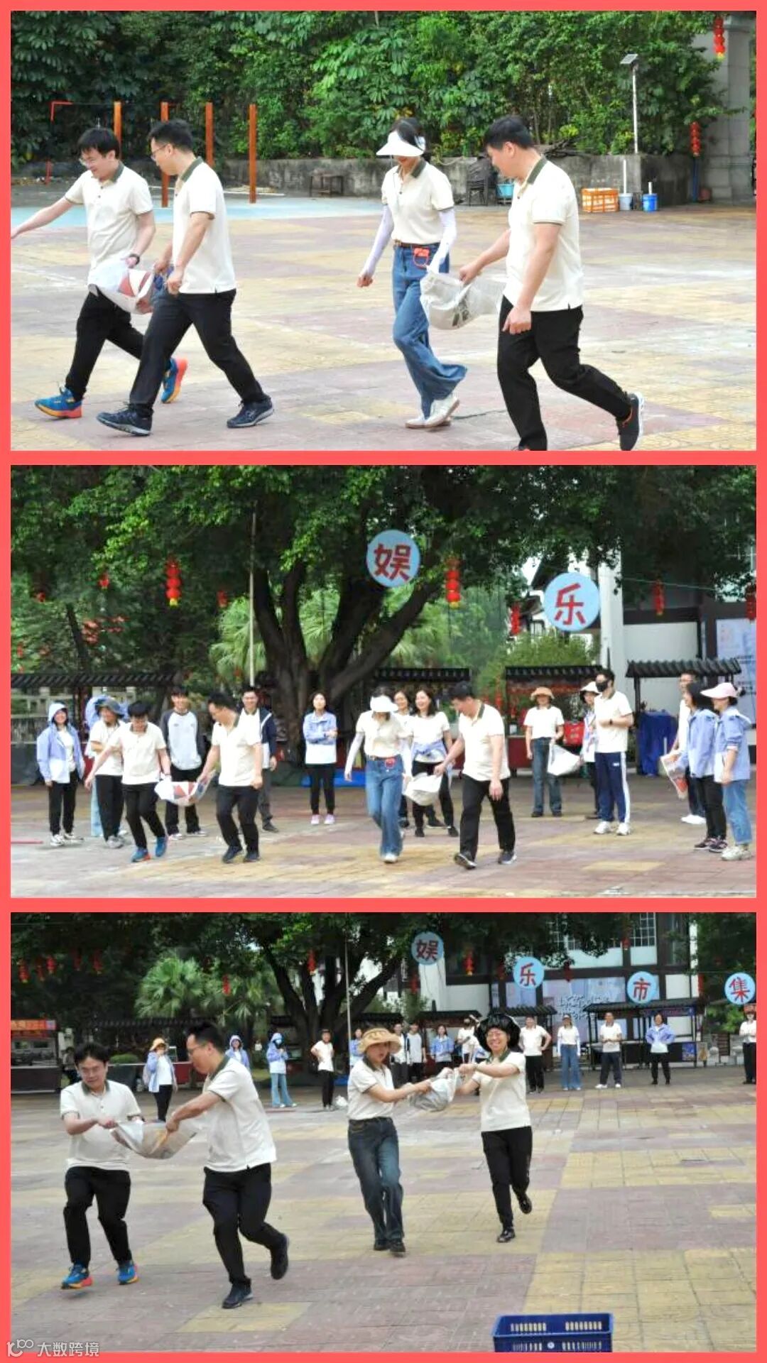 大家有的迈着小碎步小心翼翼,有的健步如飞完美配合,共同努力,前后协调、密切合作、克服困难、争分夺秒冲向终点。