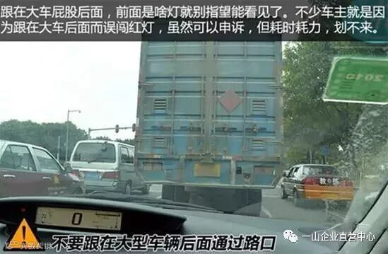 2、不要跟在大型车辆后面