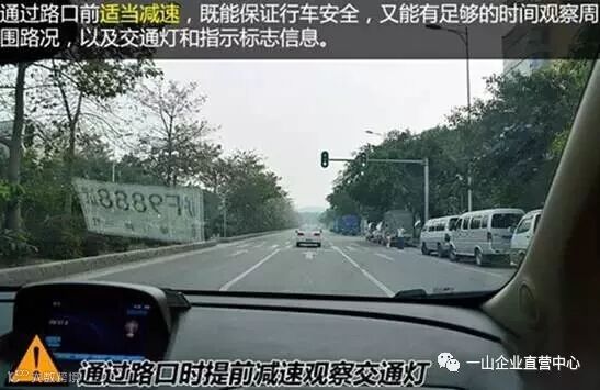 1、通过路口时提前减速观察交通灯及车道指示牌