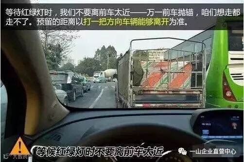 等待红绿灯时,我们不要离前车太近——万一前车抛锚,咱们想走都走不了。预留的距离以打一把方向盘车辆就能够离开为准。