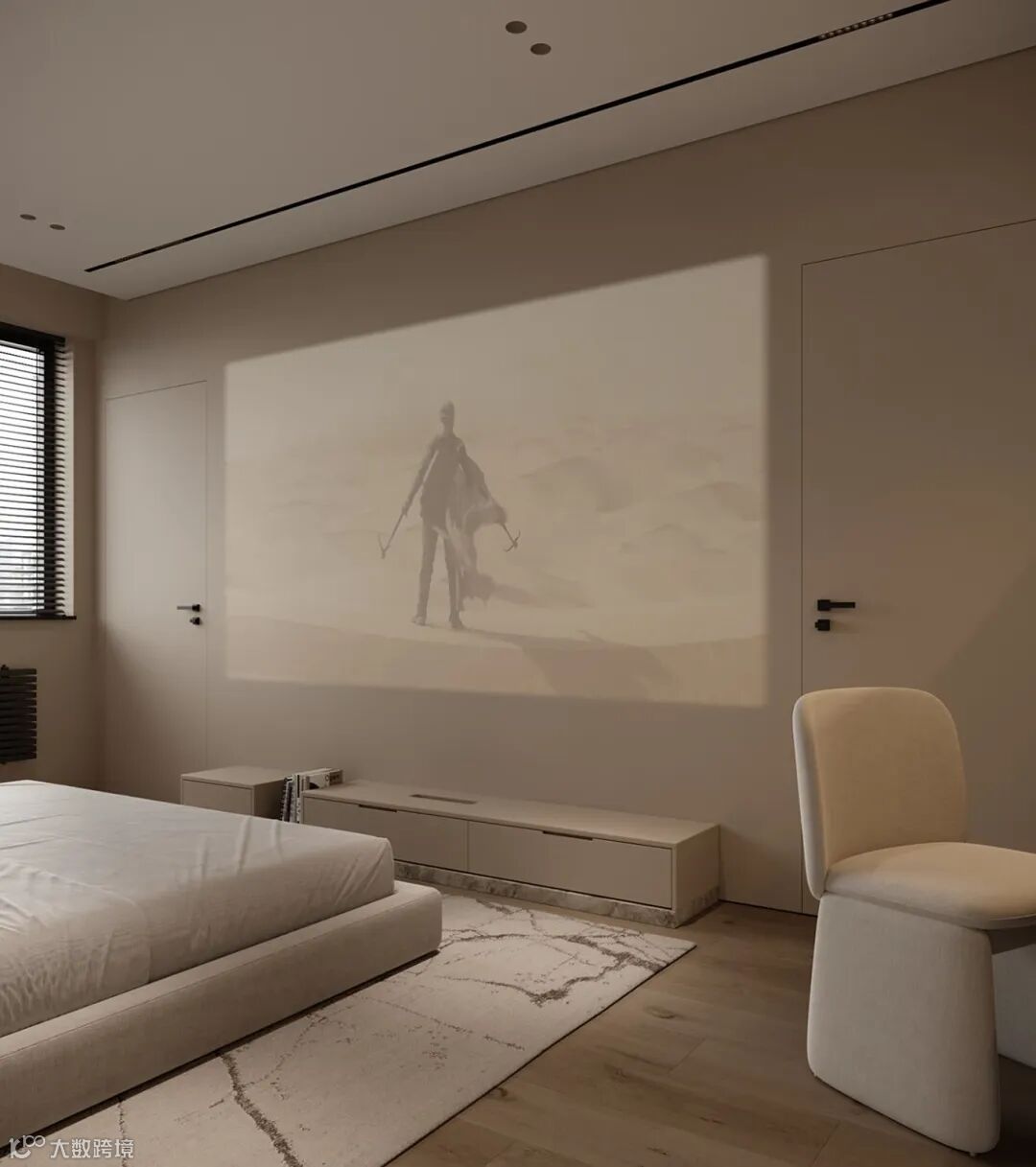 巨大的光影取代了冰冷的白墙,窝在柔软的枕头堆里