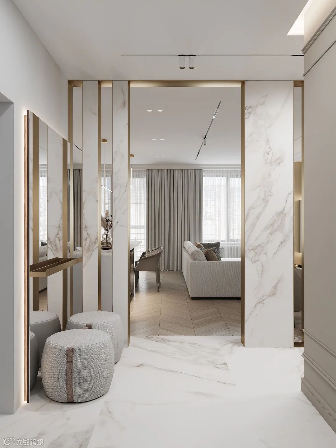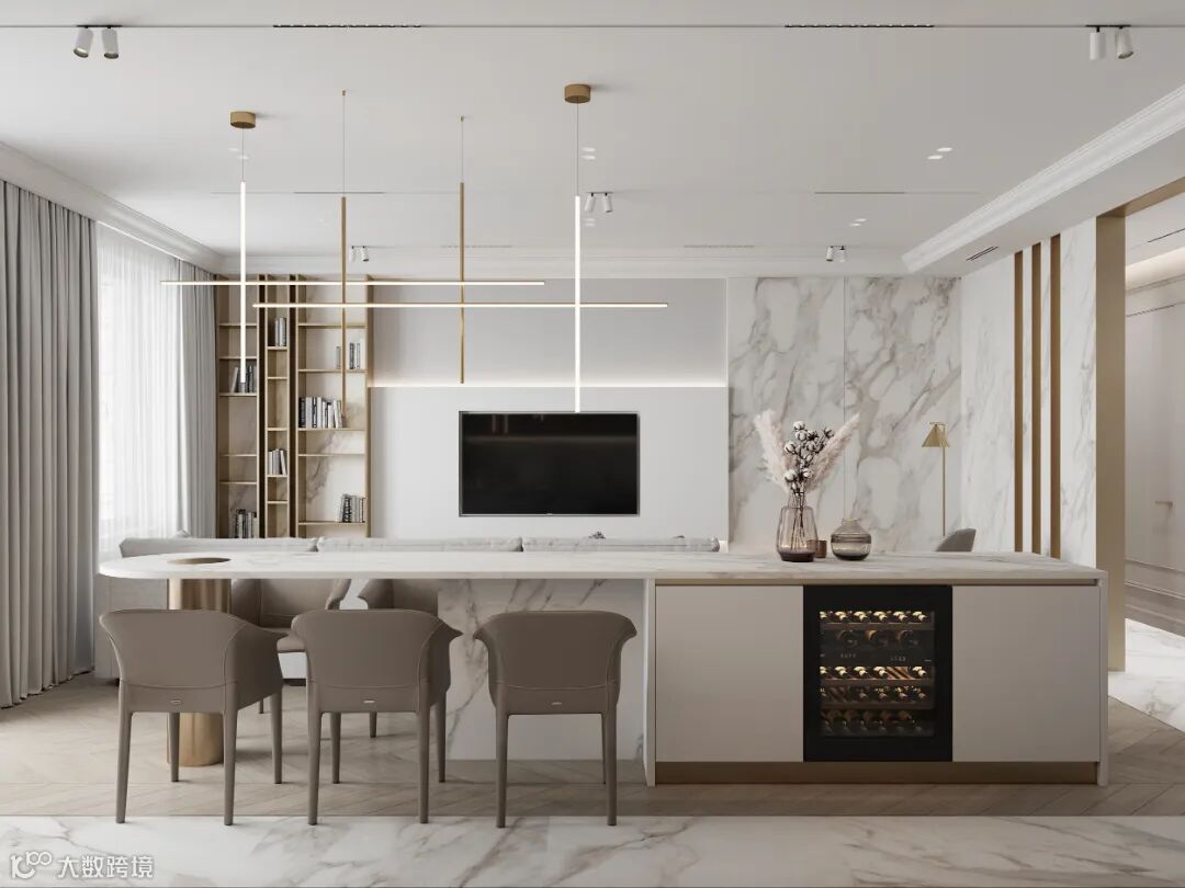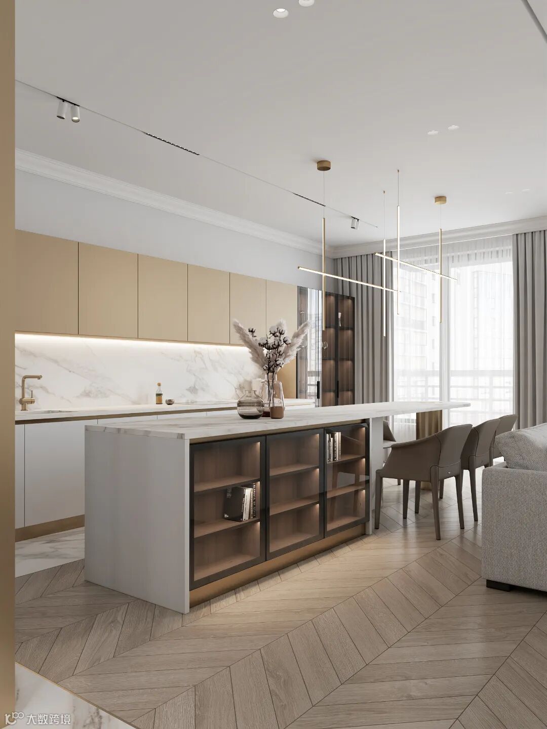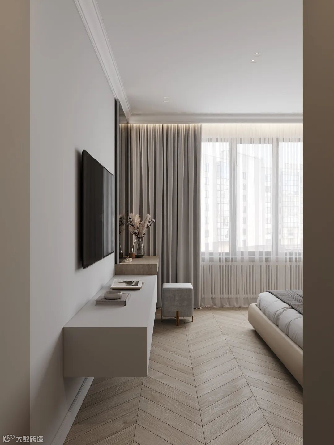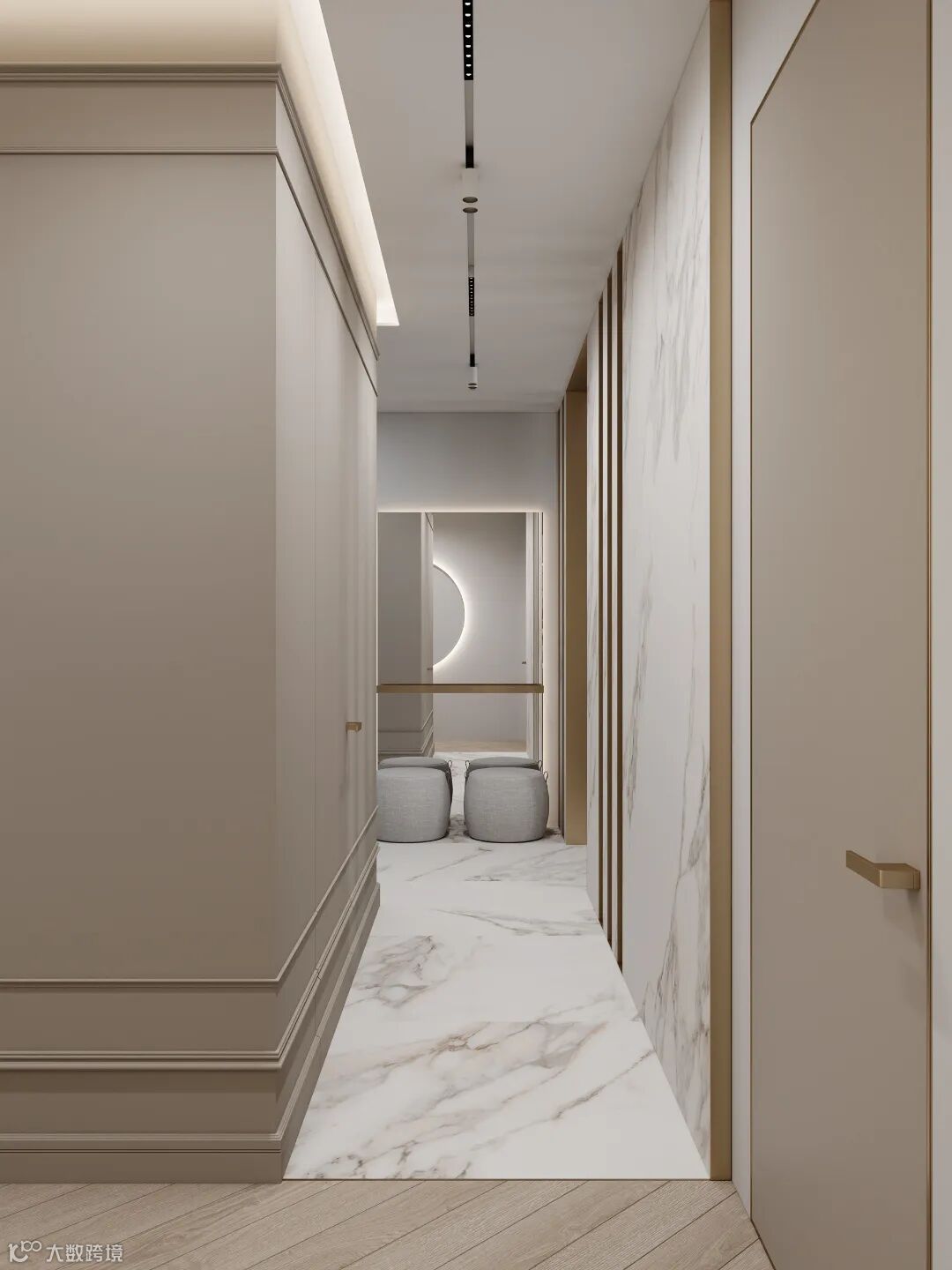 主卧采用套房设计,敞阔尺度将家的温度尽敛其中。步入式衣橱,香槟色玻璃门让空间愈发有韵味和调性,通透的视野也没有丝毫阻挡。