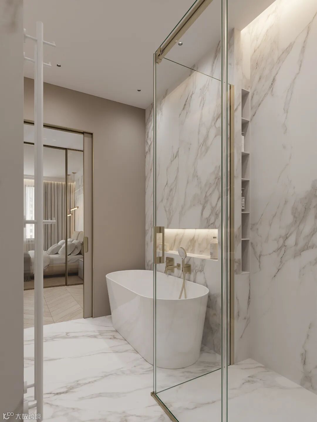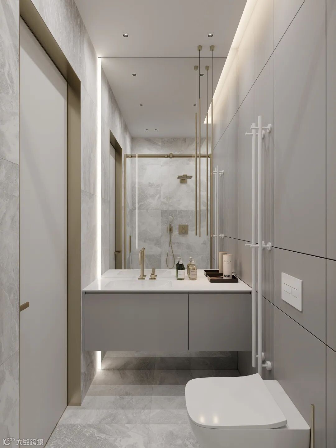 浴室简约的中性色搭配给予空间简洁轻奢的质感,干湿分离便于打理,保持卫生间的干净的同时开阔了空间,给人一种视觉享受。