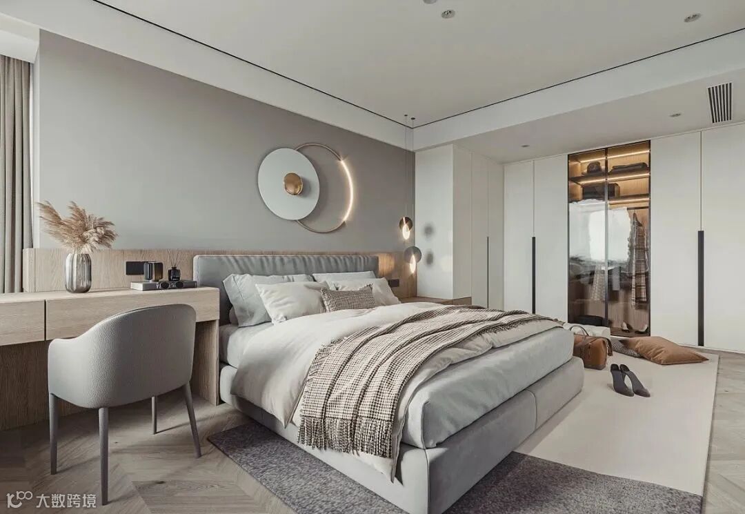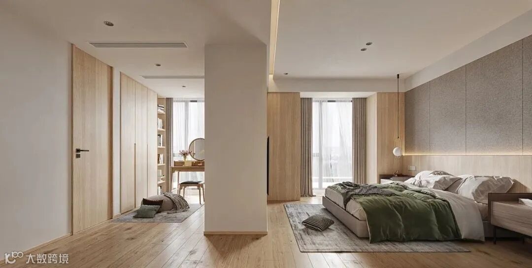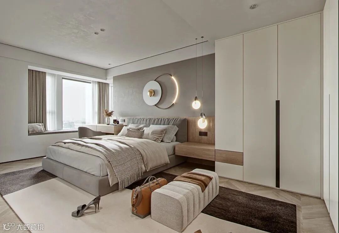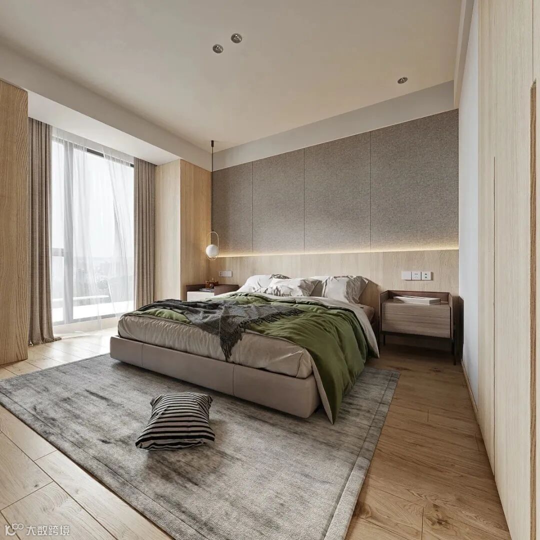 卧室延续纯朴简约的主色调,回归居室原本的宁静感,辅之以柔软而放松的家具,打造一种细腻而亲密的体验感。