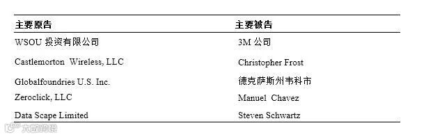 案件涉及的原告多为美国的NPE;被告则涉及多家大型跨国公司,有3M公司、戴尔技术公司、微软公司等。