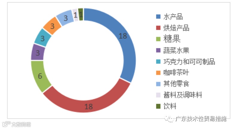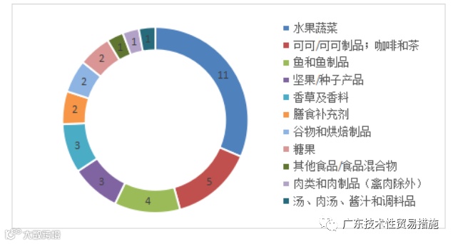图1 2020年一季度FDA拒绝进口的广东农食产品种类分布