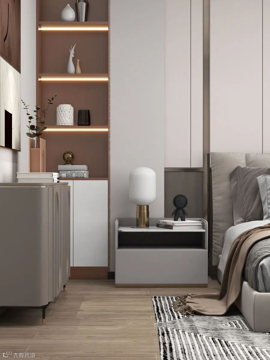 设计风格轻奢简约,用简约而不简单的细节打造了一个精致的居住空间。和谐而统一的色调高级耐看,十分温馨。展现了现代主义下轻奢风格的写意美感。
