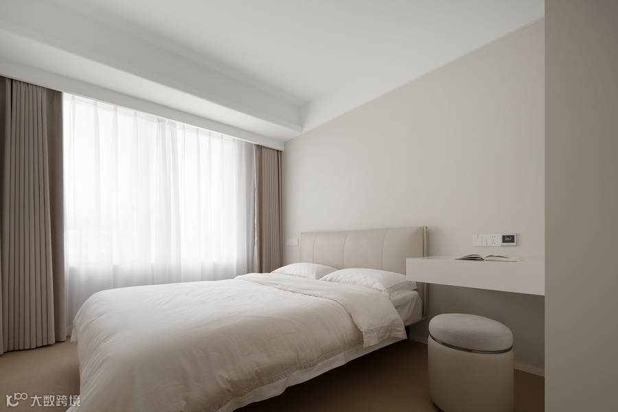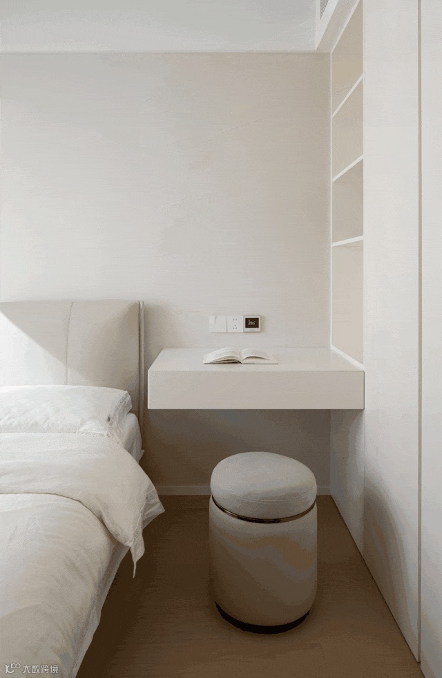 The second bedroom creates a light and comfortable spatial voice, with smooth and flowing lines that overlap vertically and horizontally, balancing and controlling the soothing rhythm of entering the bedroom.