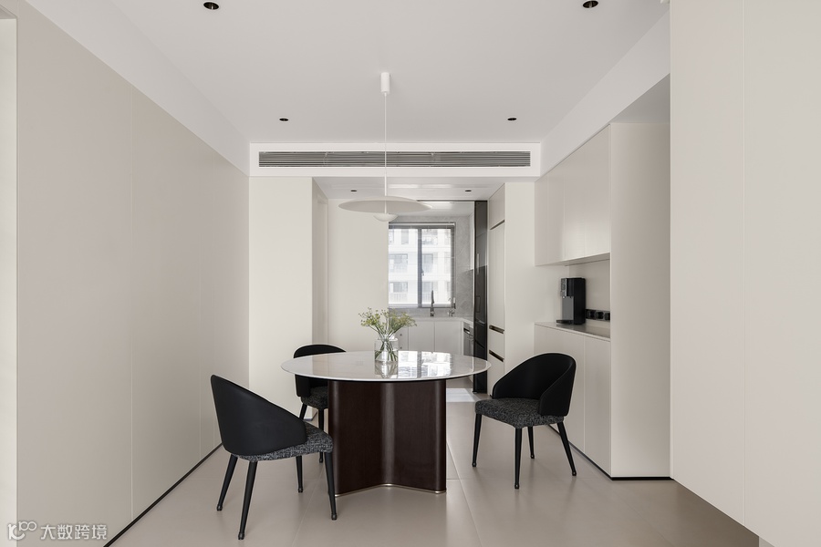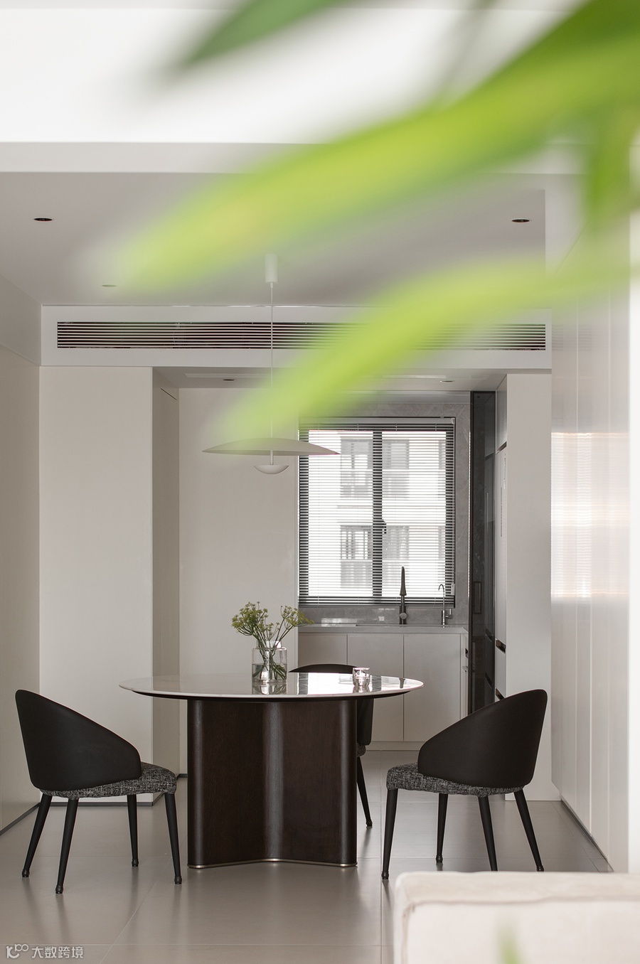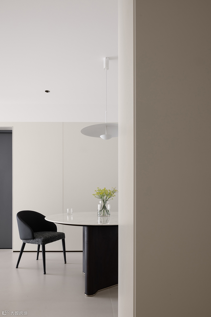 The Design Concept:White is the main color, with black as a supplement. The dining room and balcony are interconnected, and the scenery and light pour in, extending a brighter and wider view. Breaking the rigidity of the original behavioral flow and incorporating light and nature into the spatial ontology. Using emptiness to manifest reality, unleashing the power generated by the mind in the realm.
