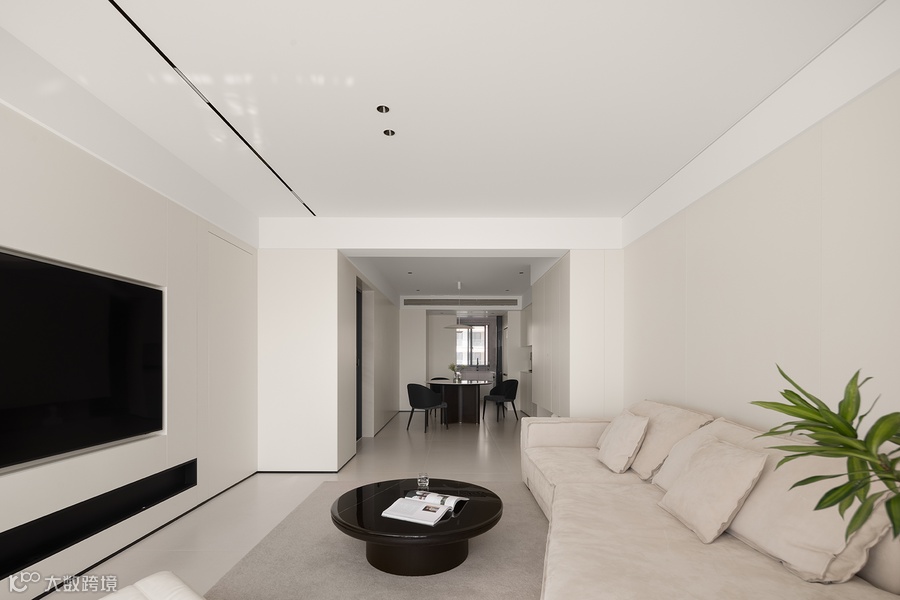 设计理念:白色为主黑色为辅,客餐厅和阳台打通联动,风景与光倾泻而入,延展更加明亮宽阔的视野。打破原始行为动线的固定性,将光与自然纳入空间本体。“以空显实”,释放境由心生的力量。