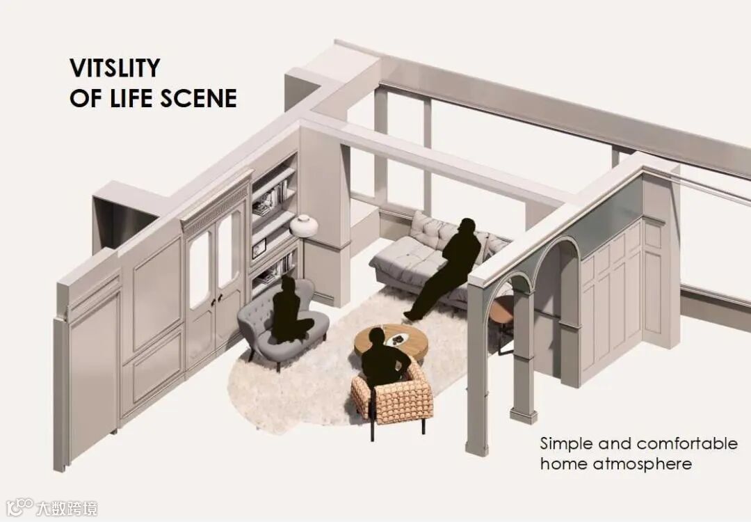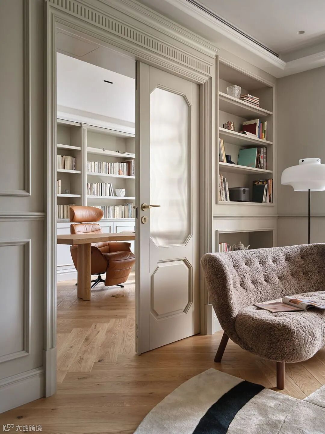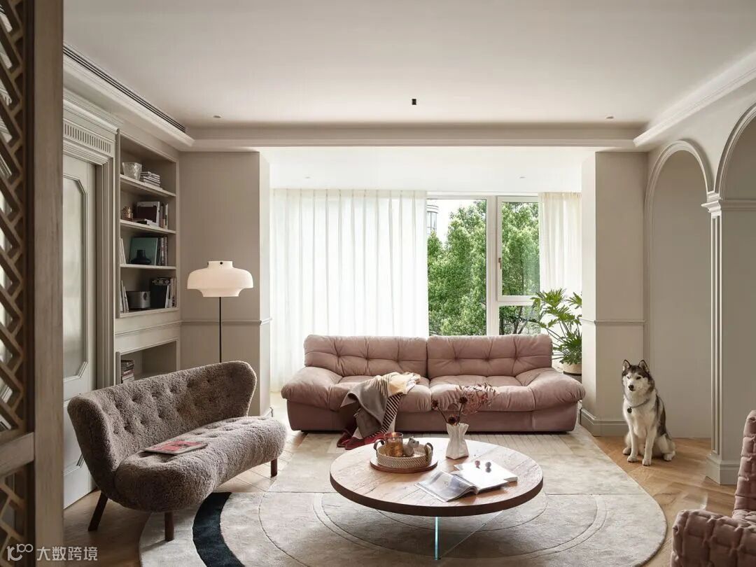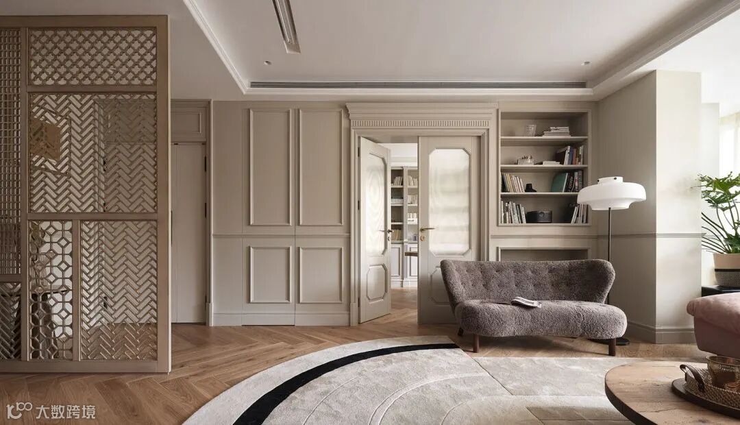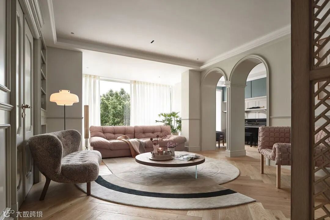 The public area of the new residence has a circular moving line, which is convenient for the pets at home, and secondly, when there are guests, the door can be closed to become an independent private space. When the door is opened, it can be linked as a public area, which greatly increases the interactivity and Mystery.