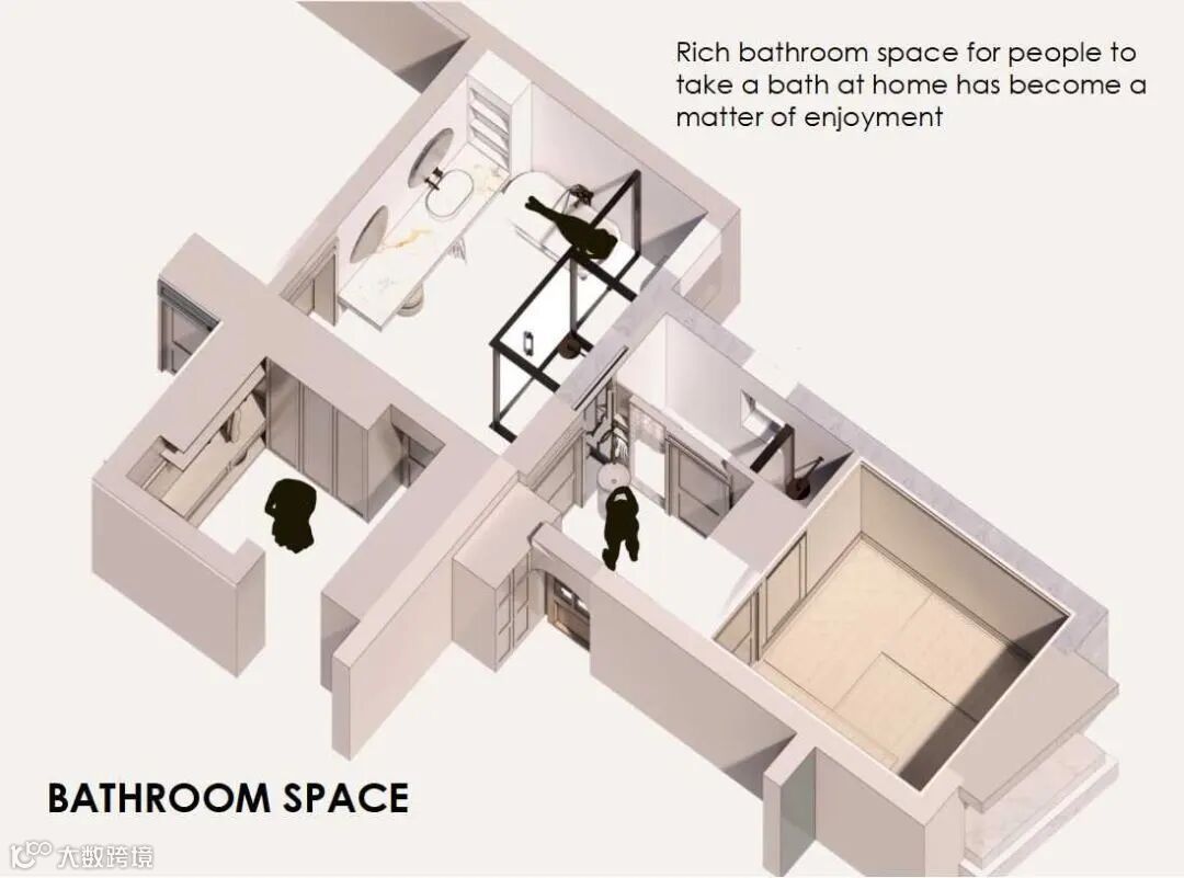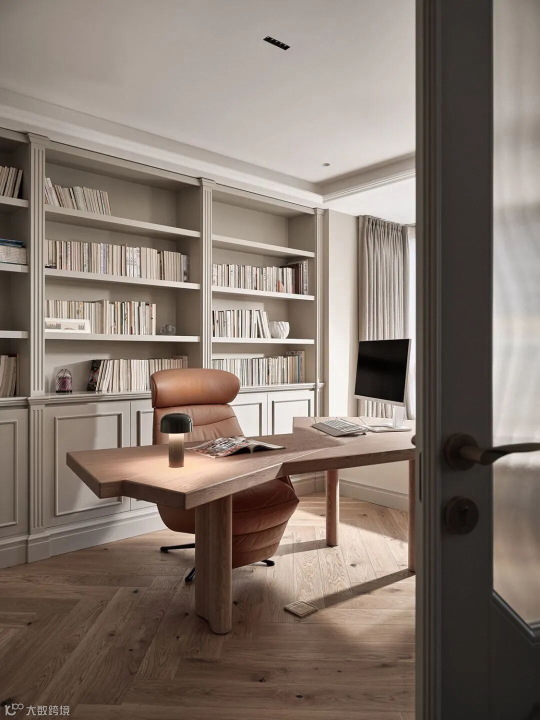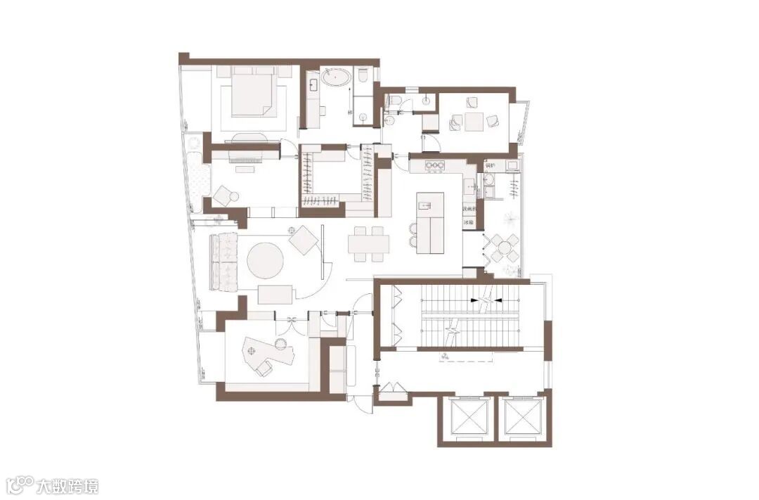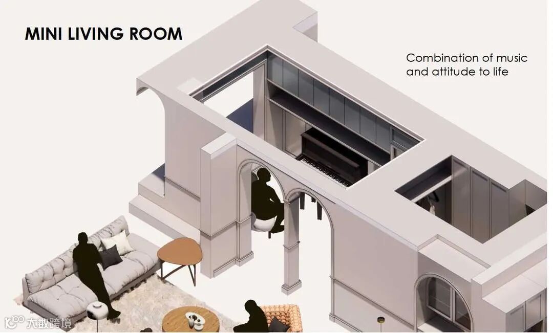 The public area of the new residence has a circular moving line, which is convenient for the pets at home, and secondly, when there are guests, the door can be closed to become an independent private space. When the door is opened, it can be linked as a public area, which greatly increases the interactivity and Mystery.
