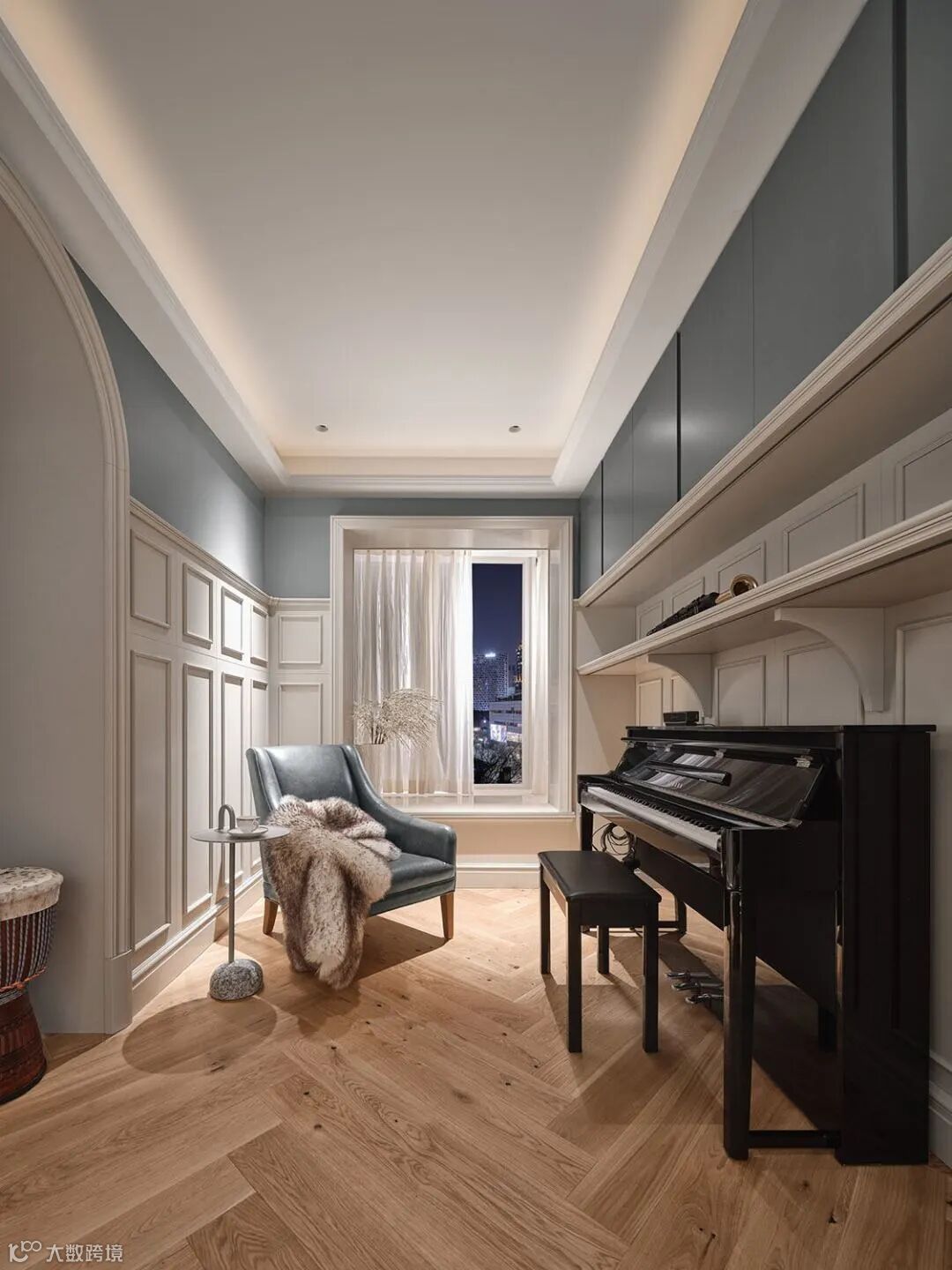 The space planning of the original apartment is not reasonable, which is very crowded and does not reflect the feeling of 188m square floor.Since only two people live in the house, the owner hopes to live more spacious and comfortable. According to the designer's needs, the overall style of the house is positioned as French retro style, milk white as the keynote, wood color paving, water blue as the ornament, coupled with unique comfortable modern home, low-key elegant French lines, warm color matching, creating a delicate and romantic space atmosphere.