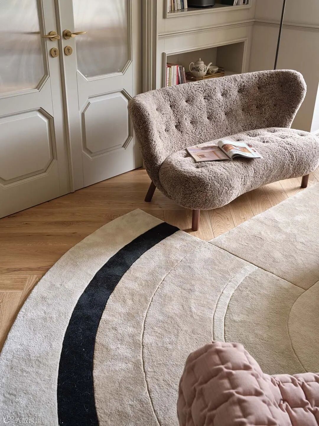 新居地公共区域做了环形动线,一来方便家里的宠物活动,二来当有客人时把门关上,即可成为独立私密空间,门打开,又可作为公共区域联动,大大增加了互动性和神秘感。