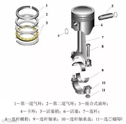 曲柄连杆机构:发动机构成的基础建设设施之一,它的作用是将燃料燃烧时产生的热能转变为活塞往复运动的机械能,再转变为曲轴旋转运动而对外输出动力。