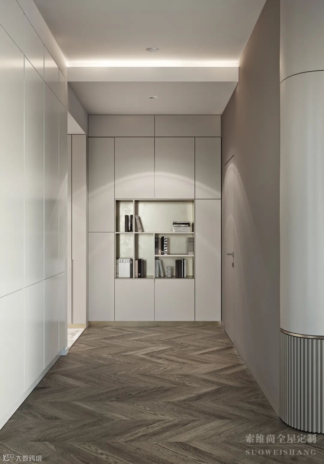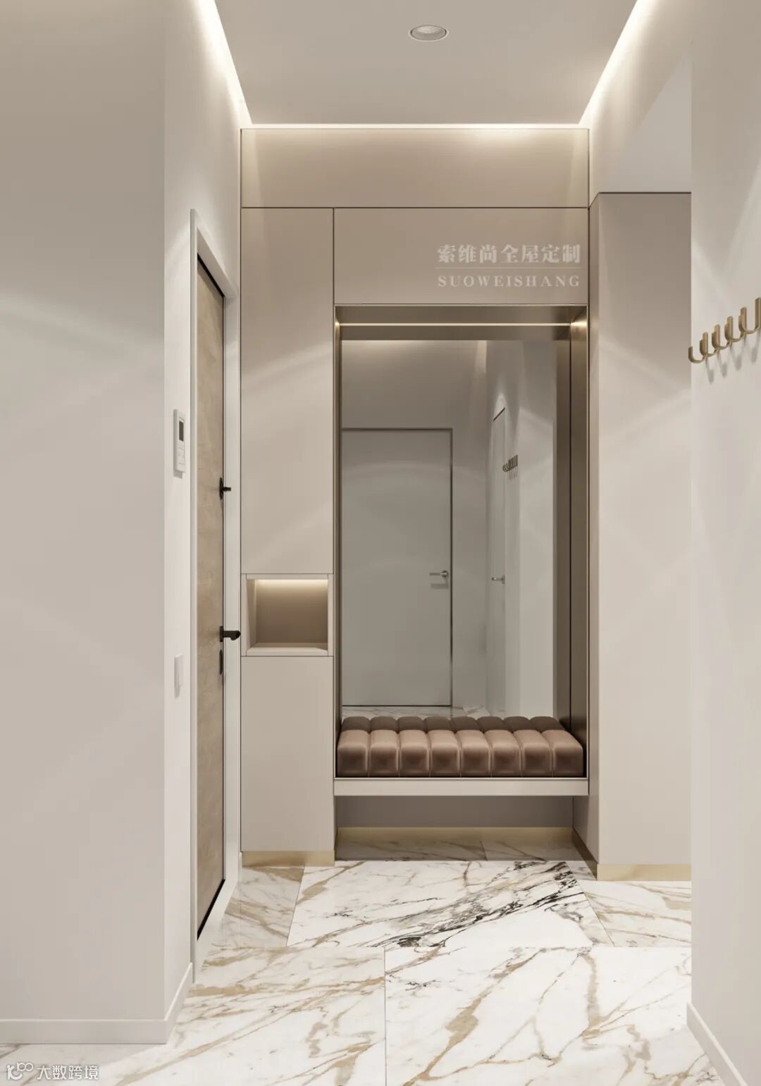 简约的玄关,美观大方,特别是方形的吊顶灯光设计,使生活充满精致的仪式感。