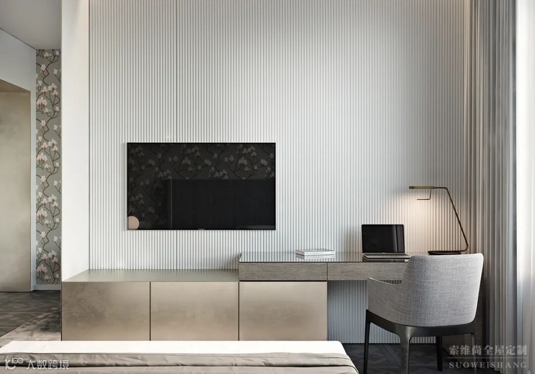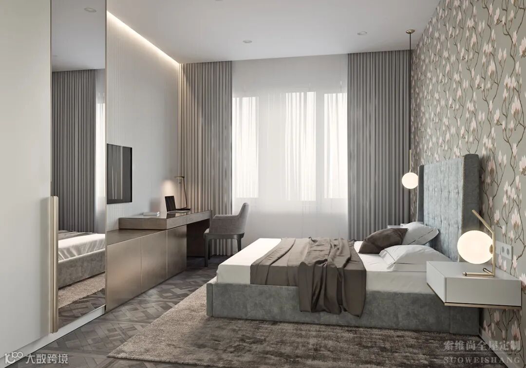 次卧选用了灰木白色作为主色调,采光充沛,营造出一个极富品质感,优雅舒适的休憩空间,体现了主任的生活品质。