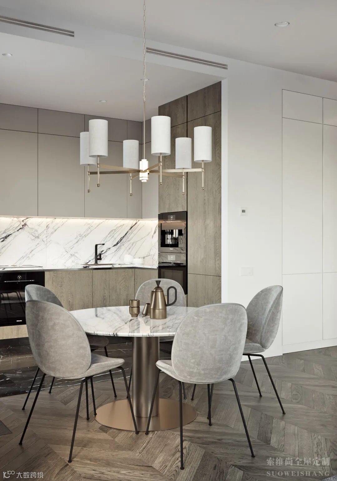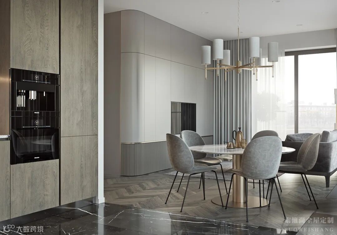 优雅的装饰和金色元素,犹如被水冲洗过一般,淡雅而静气。