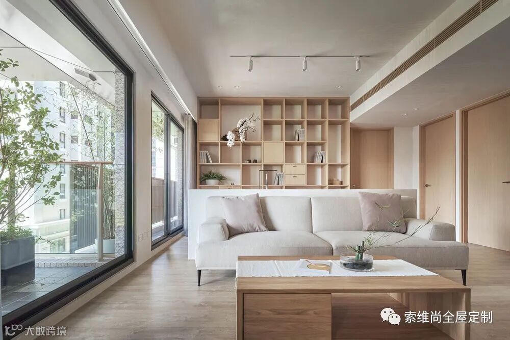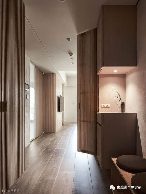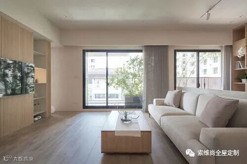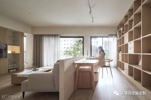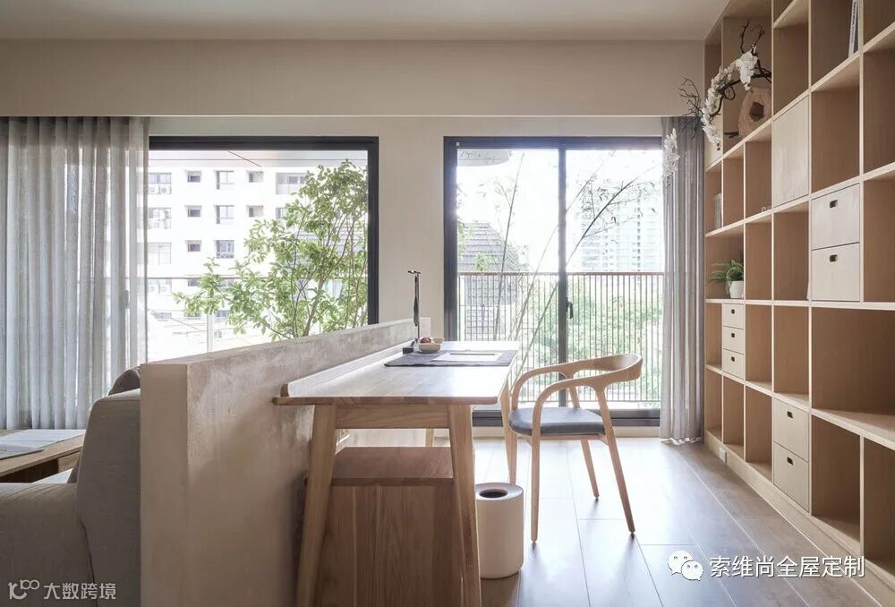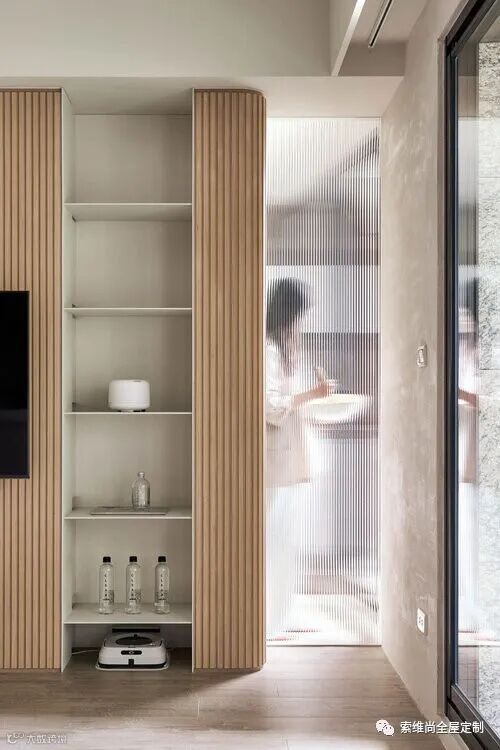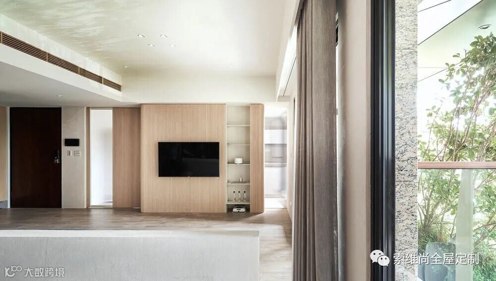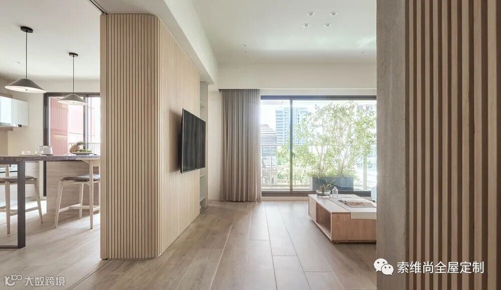 承担了电视背景墙, 同时也是厨房与客厅的隔断