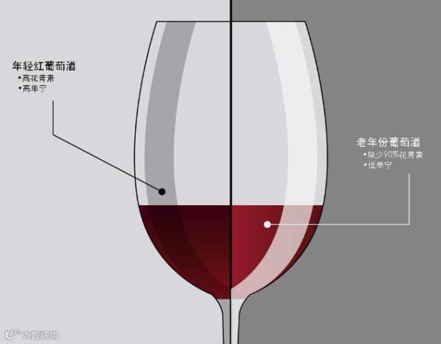 通常越浓厚的葡萄酒酒缘越窄,越清淡或是越老的酒,酒缘会越宽,红酒尤其明显。
