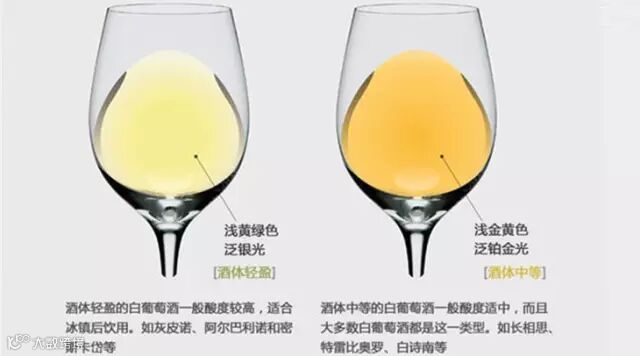 ※ 酒齢短的白葡萄酒通常颜色非常淡,略带一点黄绿色(如下图)
