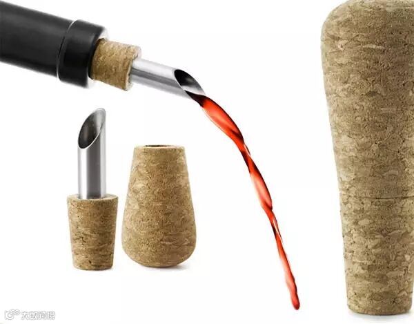 倒酒器形状与卷起的倒酒片相似,有塑料和金属等材质,这种器具的底座通常是橡胶材质的,在插入倒酒器时能和酒瓶紧紧贴在一起,从而防止洒漏,易于清洗,可以反复使用。