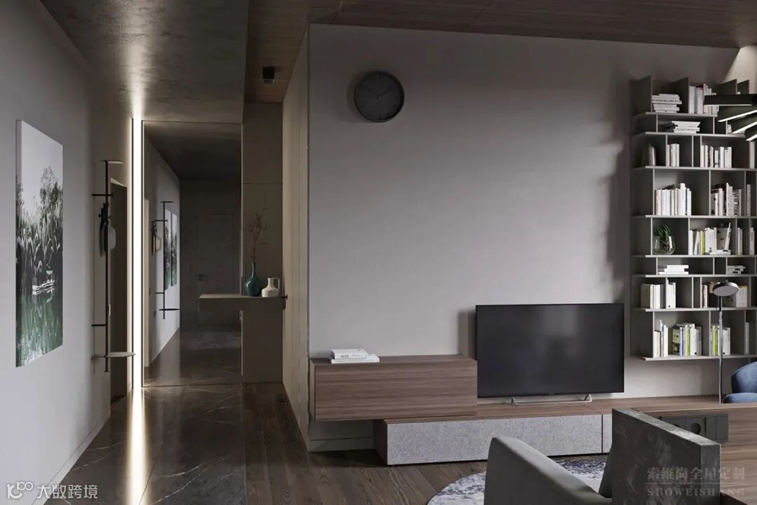 至简的线条设计,无论是柜门还是电视柜体全部使用直线,没有一丝曲线的打扰,没有一处多余的修饰。