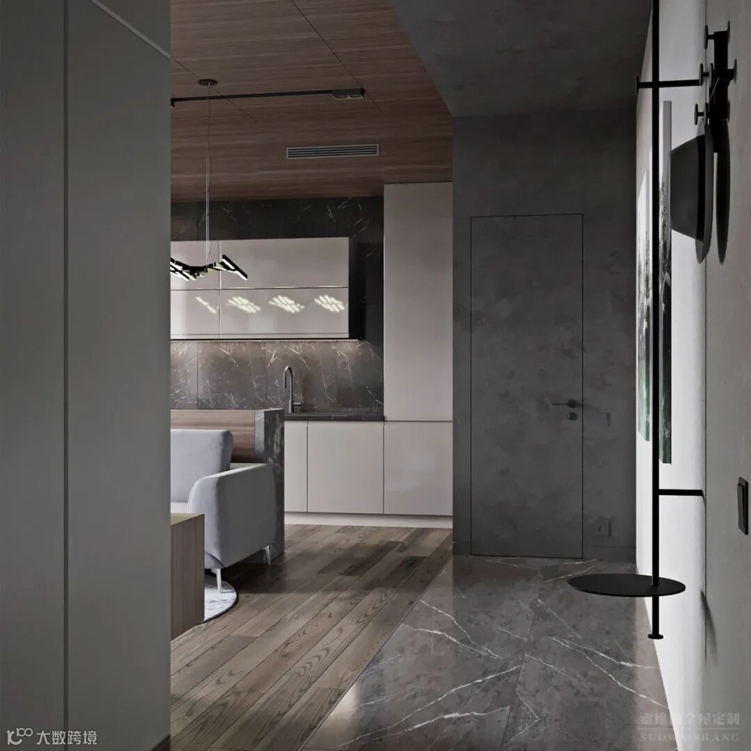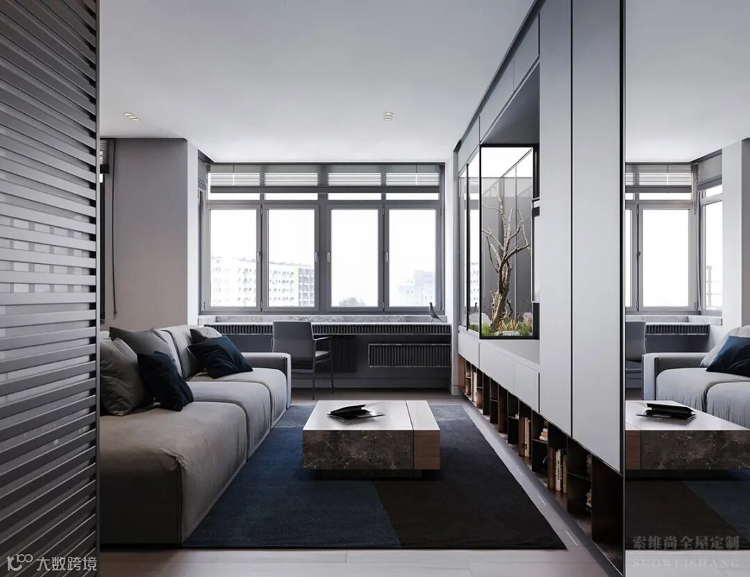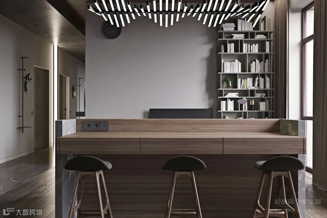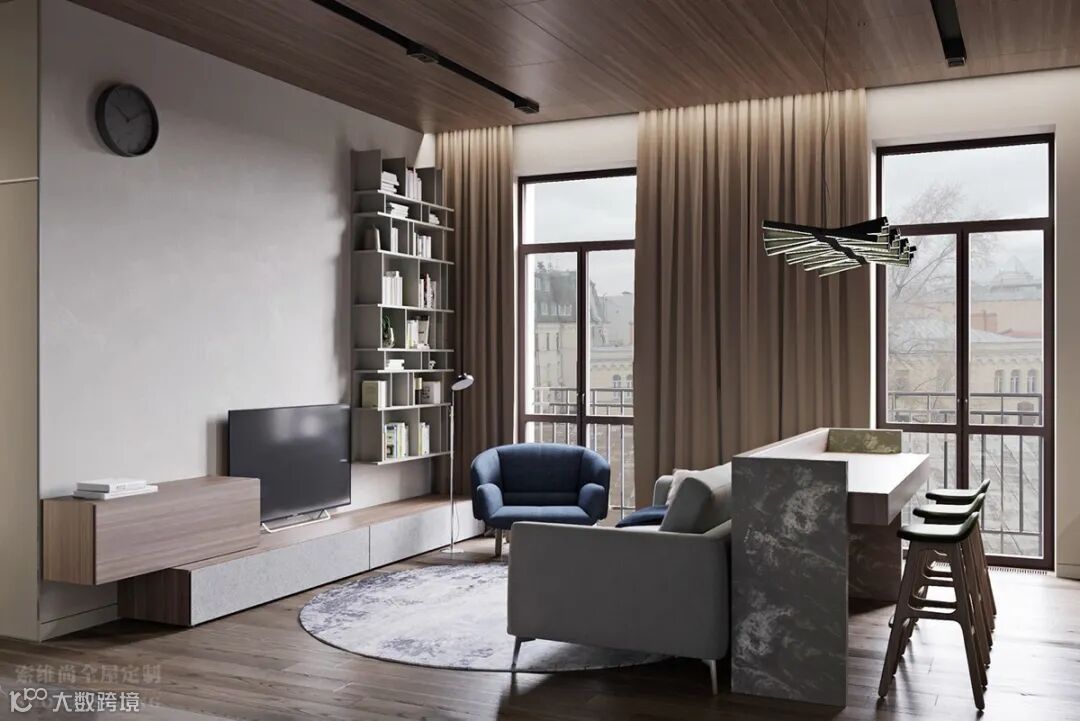 反而在各种颜色的搭配,以及家具的高品质衬托下,突出轻奢感。