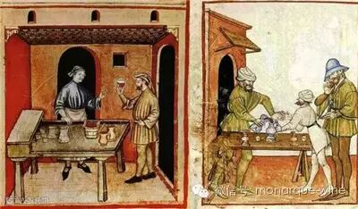 法国中世纪城镇里小酒馆数量众多,不富裕的居民只买得起颜色很淡的、发酸的兑水葡萄酒。这种小酒馆里还故意出售极咸的腌肉,这样食客就会买更多的酒解渴。