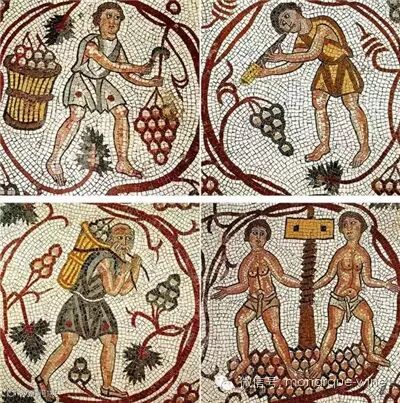 葡萄与酿葡萄酒在欧洲始终是一个重要的社会生活场景,出现在各个时期的各种建筑装饰上。
