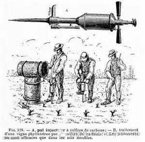 19世纪中后期,也就是葡萄根瘤蚜爆发后不久,杀虫剂问世,不少酒农将这个新式武器运用在对葡萄根瘤蚜的战争上。但是效果却不尽人意,当时的杀虫剂根本无法深入土壤杀灭虫源。南法的酒农将农药,硫磺加热并用一种叫做”Piqure”的农具(类似巨型针筒)对土壤进行熏蒸。波尔多酒商称之是“糟蹋土地”的行为。