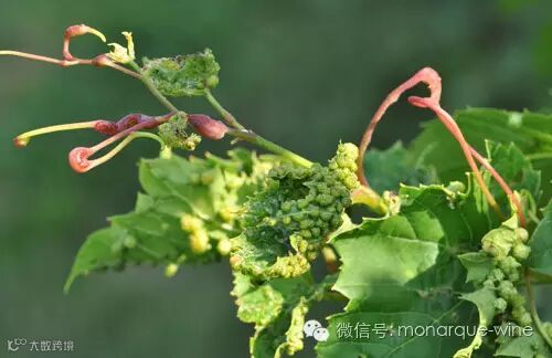 这场浩劫都来源于一种被称作葡萄根瘤蚜(Grape Phylloxera)的浅黄色微型昆虫。他们寄生于葡萄根部或者叶片,欧洲系葡萄只根部受害,美洲系及野生葡萄根和叶都可被害。