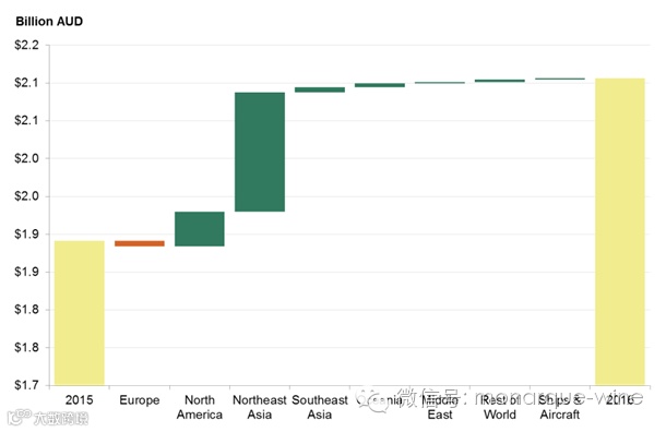 从2015年7月至2016年6月,由于瓶装酒,尤其是高端瓶装酒的增长驱动,澳大利亚葡萄酒的总出口额增长11%。