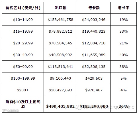 瓶装酒出口增长15%,达到17亿澳元,且瓶装酒出口均价也增长了9%,达到5.35澳元每公升,创2003年10月以来最高。
