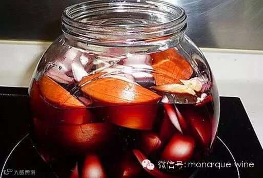二是将洋葱装入玻璃瓶内,加上红葡萄酒;