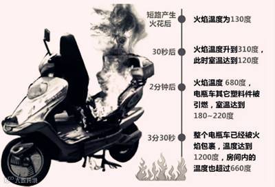 电动车引发火灾的特别危害表现在两点,即火场温度和毒烟。数据显示,3分钟,火温高达千度;30秒,有毒气体覆盖整个房间。