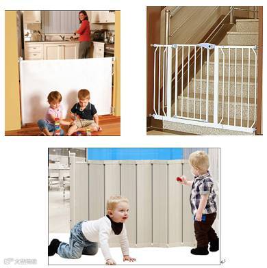 市面上常见的儿童安全门有拉卷布式、折叠屏障式与推拉式三种。