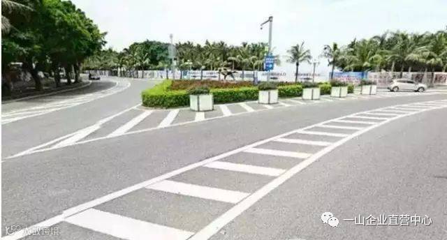 这种车道线还是比较少见的,这也就导致很多驾驶者在遇到这种“锯齿”状的车道是晕头转向的,不知道可不可以走进去。其实这种车道一般出现在交通较为复杂的路段,意思便是进入该车道后不止有一个走向。有些路口允许调头和左转,而有些路口允许右转和直行。当然相应的会有可变车道的指示牌,按照指示走就可以了。不过要记住,进入这种车道后是不可以变道的。
