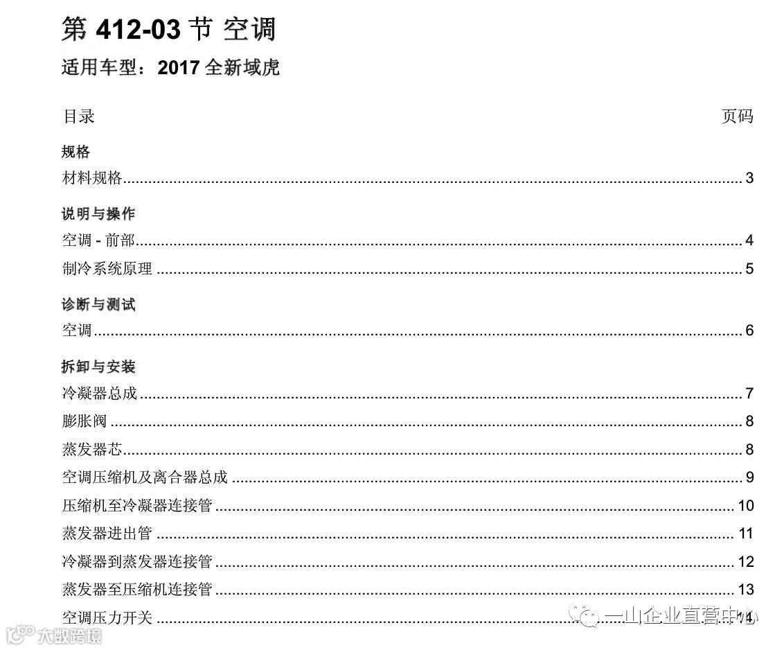 随着新车型的上市,身为汽配行业的我们,多学点新车型的知识也是很不错的哦。那么今天小编给大家带来的是2017年全新域虎空调系统维修资料。