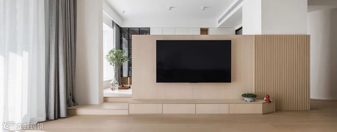 低调沉稳的背景墙,赋予空间无形静谧侘寂,表达出一种在繁华中回归宁静的意味。