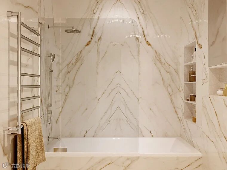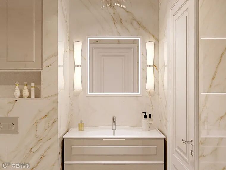 卫浴间铺贴大理石纹瓷砖,流动的纹理让纯白色空间拥有了灵气。