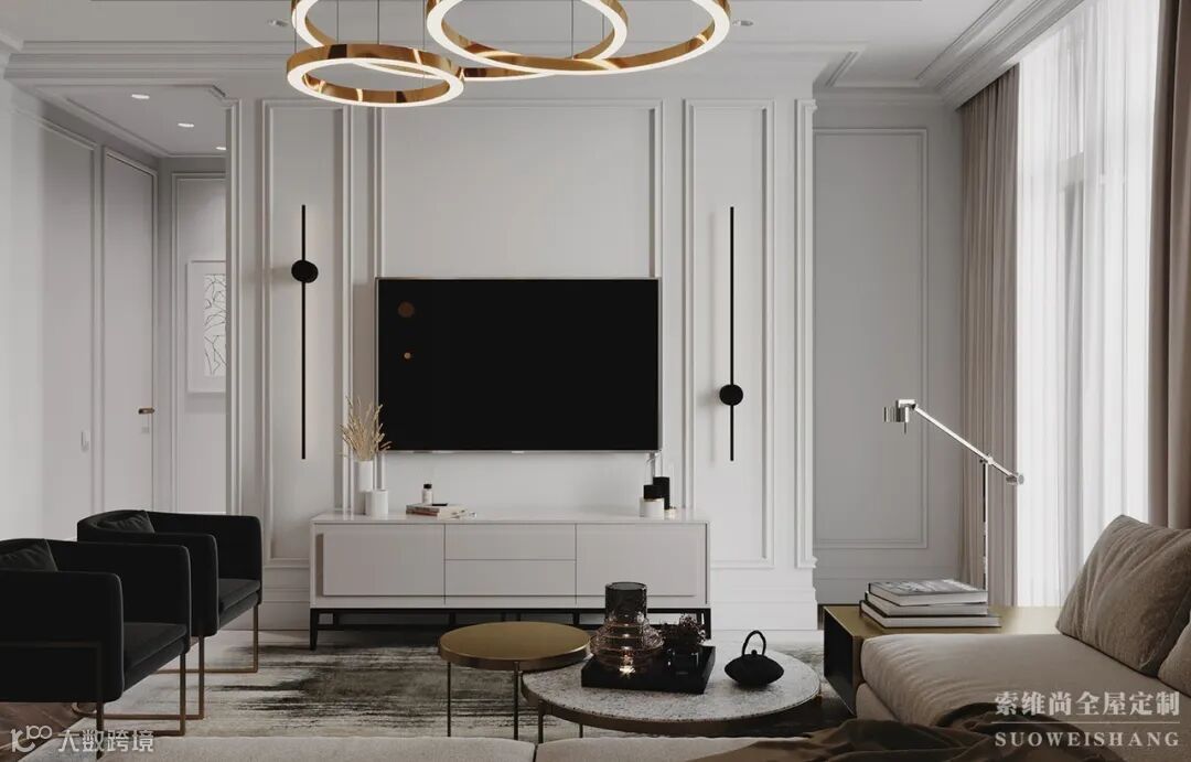 将北欧风格的精炼简洁、明快线条与现代相结合,纤细黄铜优雅地在恬静浅白基调中轻盈勾勒,呈现出简约轻奢的摩登都市品味!