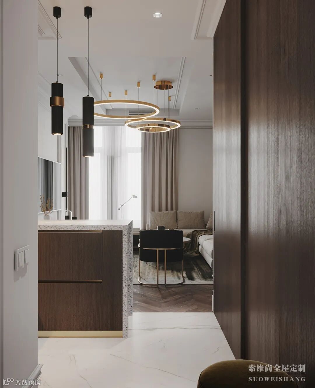 使用黄铜色在空间内进行局部点缀,打造精致的细节,凸显空间的高级美。