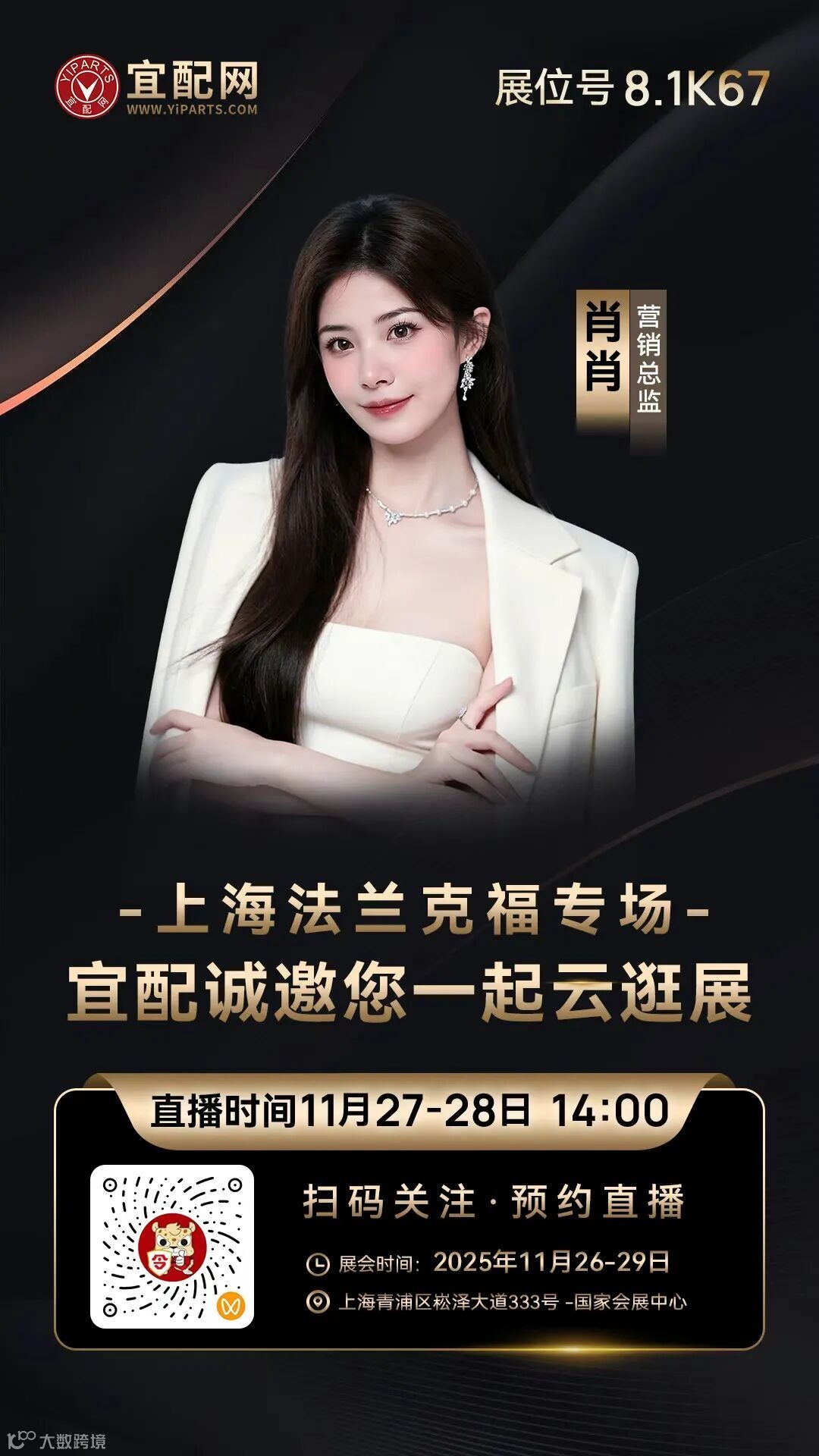 大家可以点击下方预约按钮,关注宜配网官方直播间,明天下午14:00继续跟着宜配网一起云逛法兰克福汽配展~